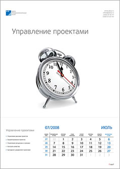 Решение: каждый месяц содержит картинку и слоган, ассоциативно отсылающие к одному из направлений деятельности компании.