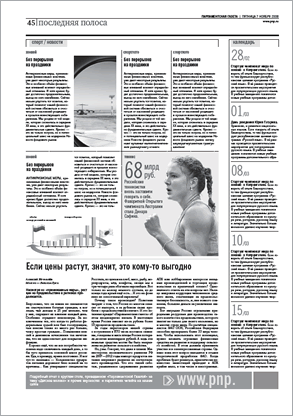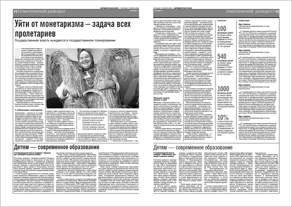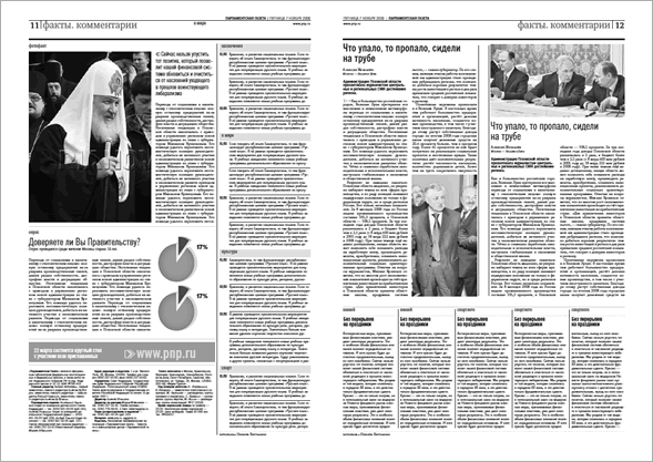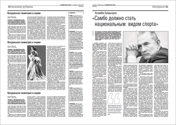 Решение: большое значение было уделено разработке сетки, которая бы эффективно работала во всех возможных возникающих ситуациях; коренным образом была переработана типографическая система газеты; выстроена иерархия подачи материала; отработаны многочисленные ньюансы оформления рубрик и подрубрик.