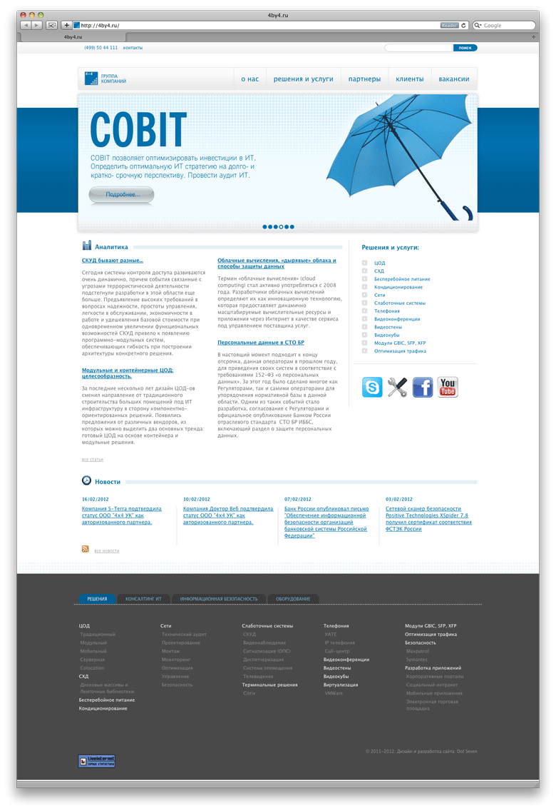 Компания 4х4 предоставляет широкий спектр услуг в области информационных технологий. Задачей нового веб сайта было продемонстрировать все направления деятельности компании, и специалисты нашей студии нашли достойное решение.